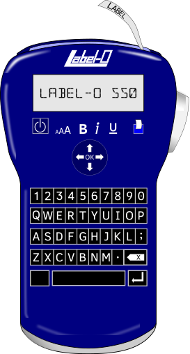 This features a blue handheld label maker with a keyboard and screen. It is designed to be used for various tasks, such as printing labels or creating customized messages. The device has a large number of buttons on its front panel, which are likely used for different functions like adjusting settings, navigating menus, and entering text. Additionally, there is a small speaker located at the top right corner of the label maker, providing audio feedback when needed. Overall, this handheld device appears to be versatile and user-friendly, making it suitable for various applications.
