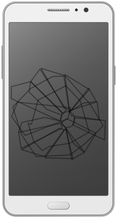 This features a cell phone with a gray screen, which has a unique design on it. It appears to be an illustration of a white smartphone that is locked and has a bunch of cracks in the middle of its screen, giving it a shattered appearance. The phone's screen takes up most of the image, showcasing its intricate design.