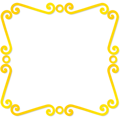 This features a yellow frame with curled edges, giving it an elegant and decorative appearance. The frame is adorned with swirls in the corners and middle parts, adding to its visual appeal. The overall design of the frame creates a sense of depth and dimension, making it an attractive focal point for any artwork or photograph displayed within it.