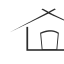 This features a black and white house icon, which is an outline of a building. This icon is likely used to represent a farm stay or similar lodging option. The house has a distinctive shape with a pointed roof, giving it a unique appearance. The overall design of the icon suggests that it could be used in various contexts related to accommodations and travel.