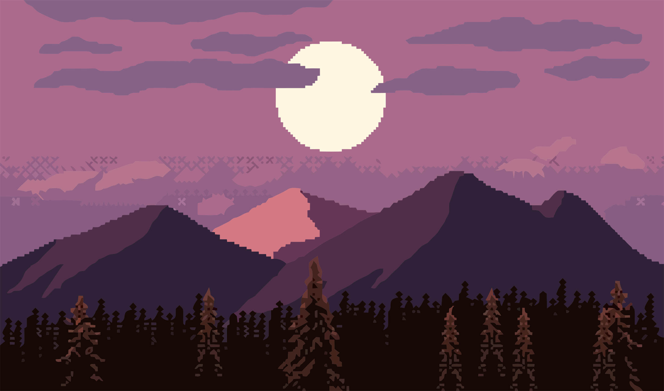 Tags: 8-bit, 8bit, dusk, forest, landscape, mountain, nature, pixel art, pixels, retro, sunset, cloud