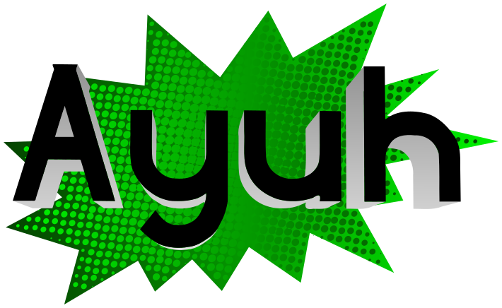 This features a green and white sign with the word "AYUH" written on it. This word is likely an acronym or abbreviation, but without further context, it's difficult to determine its exact meaning. The sign appears to be placed in front of a background that has a pop art style, giving it a unique and eye-catching appearance.