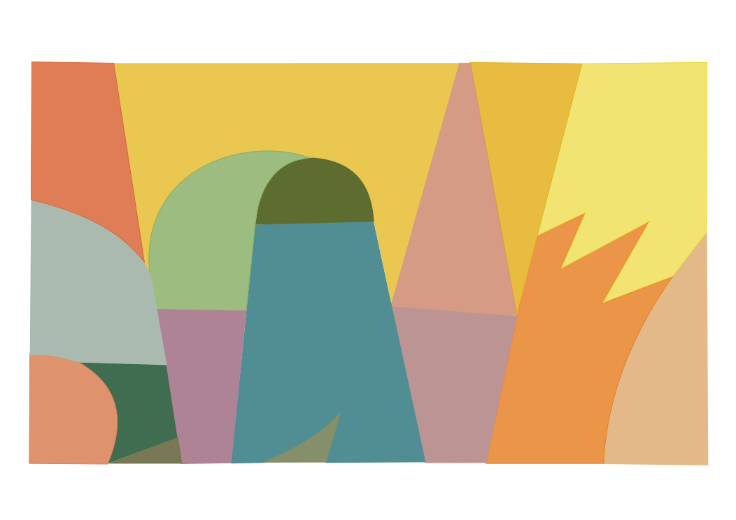 This is a colorful and abstract art piece featuring various shapes in different colors. These shapes are arranged to create an interesting visual effect, with some of them overlapping each other. The background appears to be made up of these abstract shaped elements, which vary in size and color. Overall, the composition creates a vibrant and dynamic scene that captures the viewer's attention.