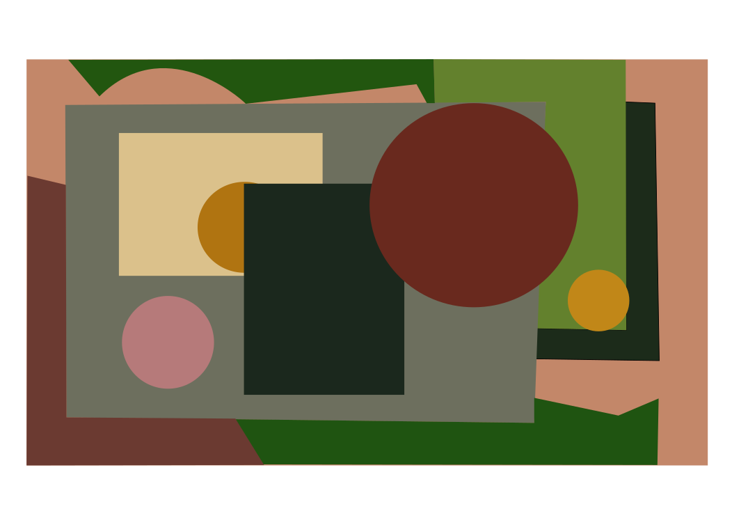 This features a collage of four different colored circles, each with varying shades and sizes. These circles are arranged in a visually appealing manner, creating an interesting composition. In addition to the circles, there is also a square shape present within the collage, adding more depth and variety to the overall design. The colors used in this artwork create a sense of harmony and balance, making it an attractive piece for viewers to appreciate.