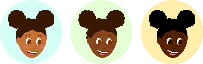 This features three circles, each containing a smiling girl with an afro puff. Each girl has a different skin tone and is wearing a yellow shirt in the top right circle, while the other two girls are wearing green shirts. The circles are placed next to each other on a white background, creating a visually appealing composition.