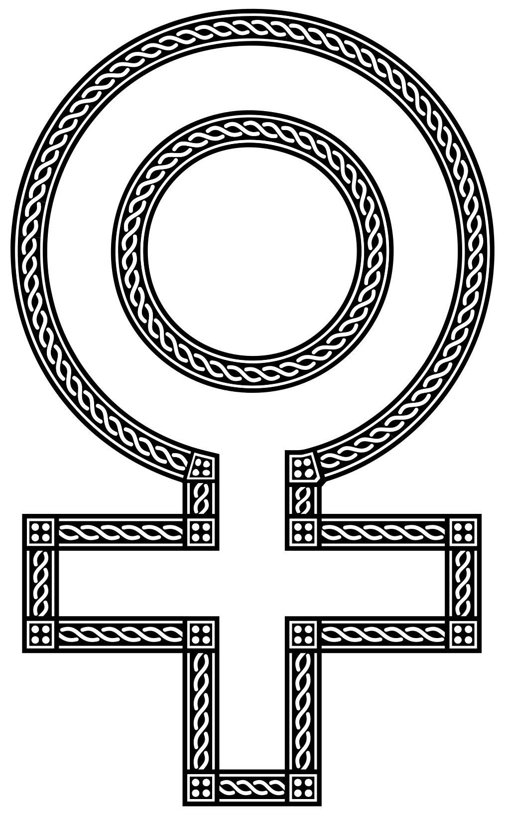This features a decorative female symbol, which is an intricate design of a woman's figure. This symbol is often used to represent the feminine gender or women's rights and empowerment. The design includes various elements such as circles, lines, and other geometric shapes that create a visually appealing pattern. The overall appearance of the symbol gives off a sense of strength and unity among women.