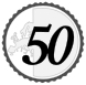 This features a round, white and black coin with the number fifty written in black. The coin is adorned with an intricate design of a castle or lion on it. This unique coin appears to be a collector's item or possibly used for decorative purposes.