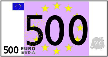 This features a purple and white bill with the number 500 written on it. The bill is in Euros, as indicated by the presence of stars surrounding the number. There are several stars scattered throughout the bill, adding to its visual appeal. Additionally, there are two smaller bills visible at the bottom right corner of the main bill, possibly indicating a larger amount or denomination.