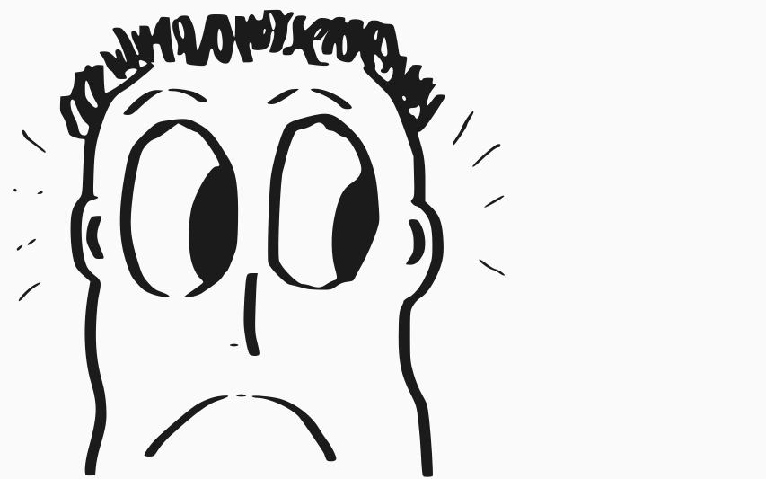 This features a cartoon drawing of a man with big eyes and a frowning expression. He appears to be looking upwards, possibly in surprise or discomfort. The man's facial features are exaggerated, giving him a comical appearance. The drawing is done in black and white, which adds to the overall artistic style of the image.