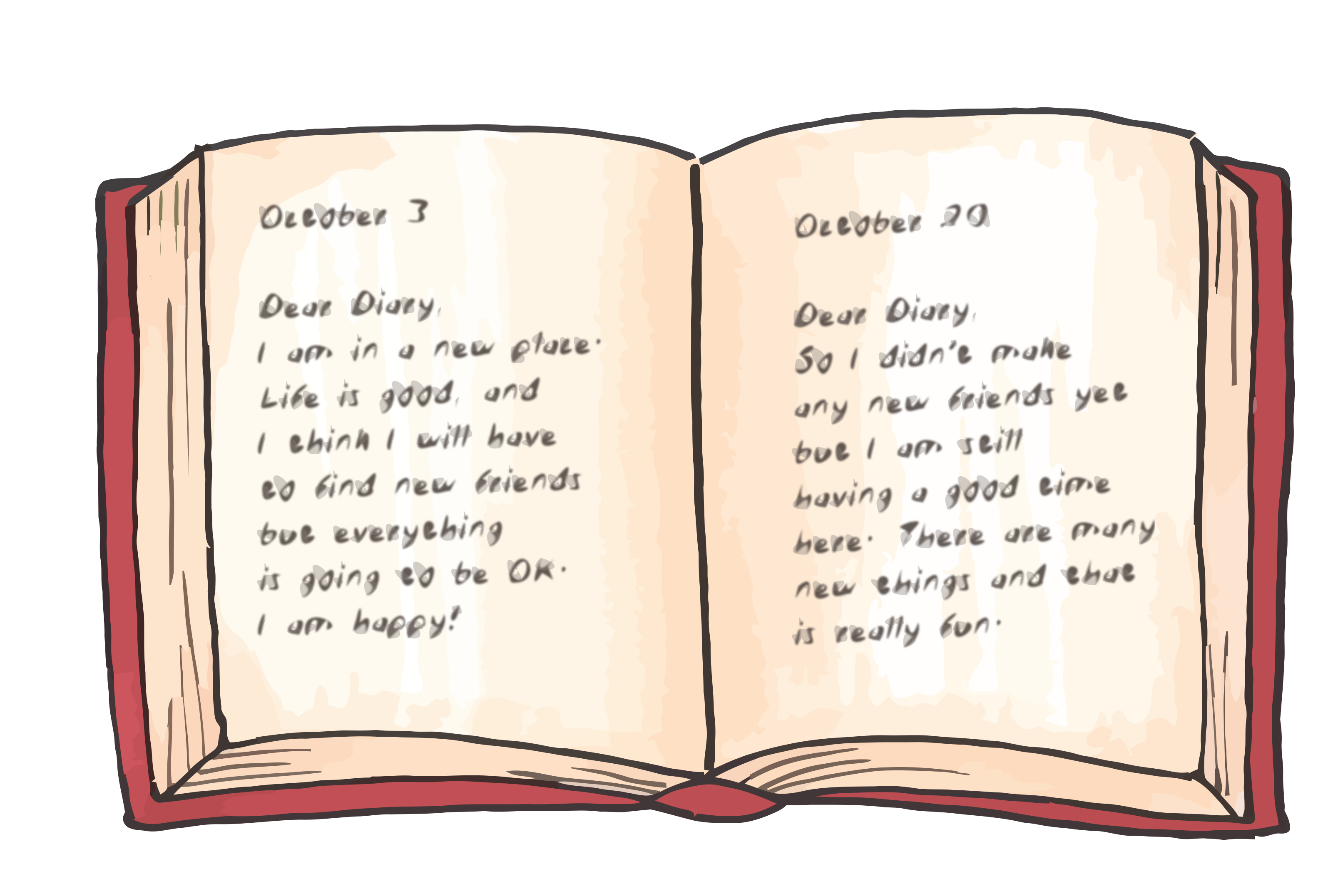 This features a book with the title "Dear Diary" written on its cover. Inside, there are several pages of diary entries written in various handwriting styles. Some of the entries appear to be more interesting than others, but overall, they seem to lack excitement or depth. The book is open to one of the pages, revealing a few sentences about the author's life and experiences. The pages are filled with writing, making it clear that this diary has been used extensively over time.