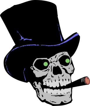 This features a skull with a top hat and cigar, giving it an American hot rod culture vibe. The skull is prominently displayed in the foreground of the picture, while the top hat adds a touch of sophistication to the overall design. A cigar is also present in the scene, further emphasizing the hot rod theme. This unique combination of elements creates an interesting and eye-catching image that stands out from typical skull or top hat designs.