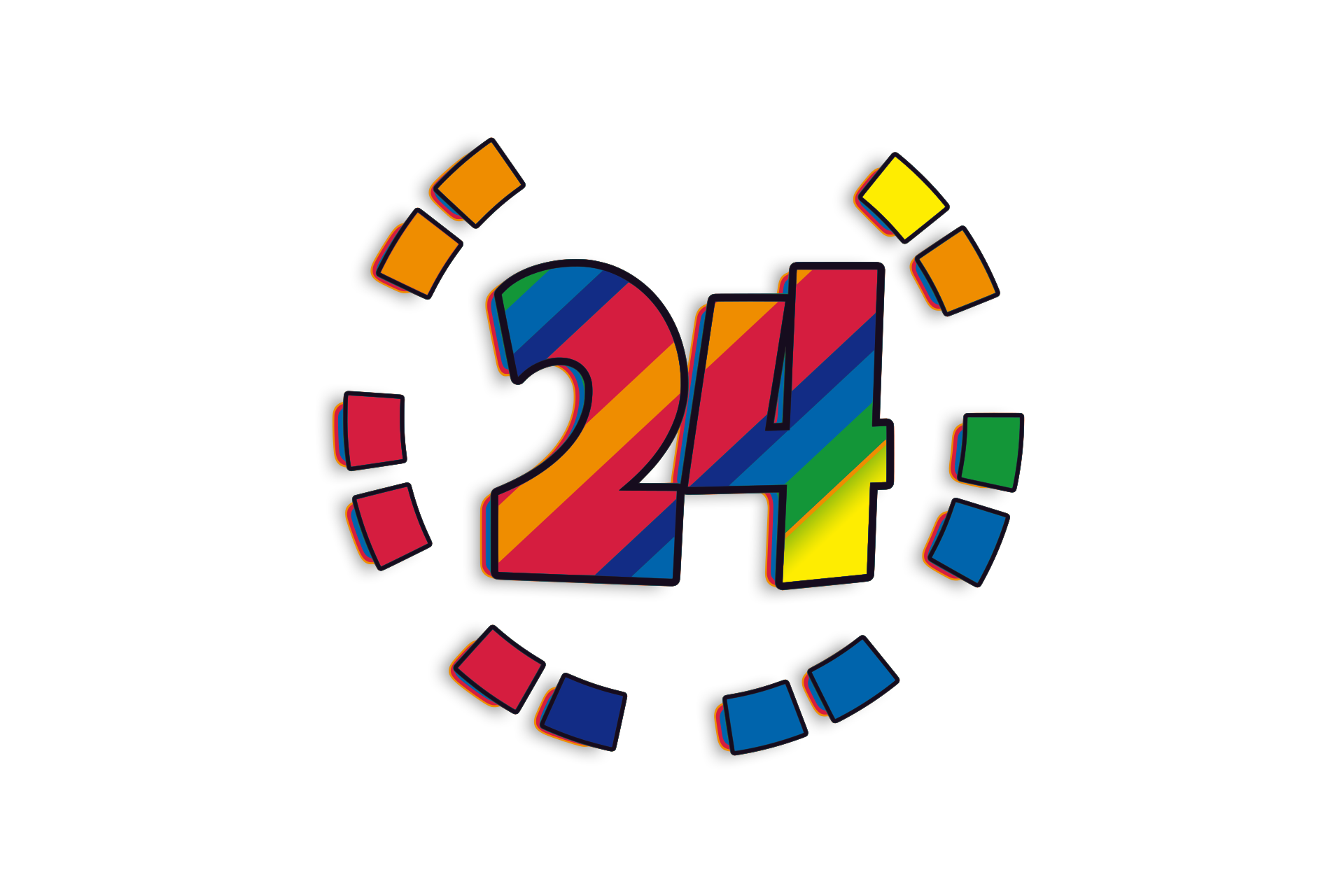 This features a colorful and creative representation of the number 24. It is made up of various colored blocks, including red, blue, green, yellow, orange, and purple. These blocks are arranged in such a way that they form the shape of a clock face with the number 24 prominently displayed at the center. The vibrant colors and unique design make this image visually appealing and eye-catching.