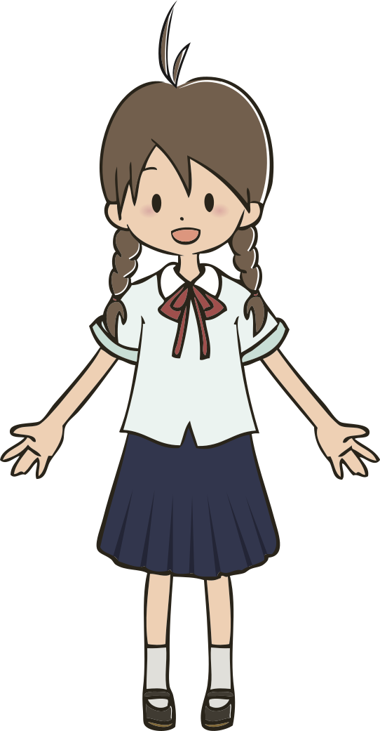 This features a cartoon drawing of a young girl wearing a school uniform. She has brown hair and is smiling, giving the impression that she is happy or enjoying herself. The girl's outfit consists of a white shirt and black skirt, which are typical attire for students in many countries. Her ponytails add to her cute appearance, making her look even more adorable. Overall, this cartoon drawing captures the essence of a cheerful school girl with an infectious smile.