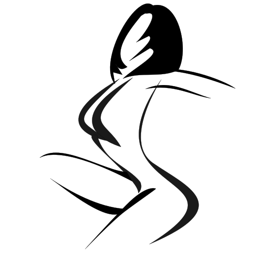 This features a silhouette of a woman, who appears to be dancing or performing some form of movement. She is depicted as naked and has a black outline surrounding her body. Her hair is described as being black in color. This artistic representation captures the essence of motion and grace, showcasing the beauty of the human form through its outline.