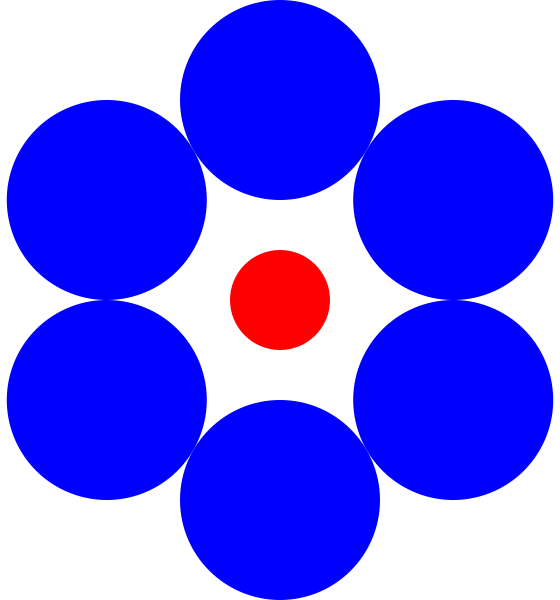 This features a blue circle with a red dot in the center. Surrounding the central circle are nine smaller blue circles, each varying slightly in size and position. The overall composition creates an interesting visual effect that draws attention to the central red dot. This design could be used for various purposes such as a logo or an artistic piece.