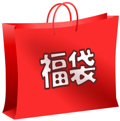 This features a red shopping bag with Japanese writing on it. It is likely used for the celebration of Fukubukuro, which is a Japanese tradition where customers receive a bag filled with items from the store they visited during the previous year. The bag appears to be made of paper and has a distinctive design that makes it stand out. The red color of the bag adds an eye-catching element to the overall presentation.