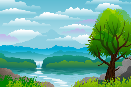 Tags: art, background, blue, design, environment, grass, green, hill, illustration, lake, landscape, mountain, nature, outdoor, plant, scenic, sky, skyline, spring, summer, tree, vegetation, wallpaper, water, waterfall