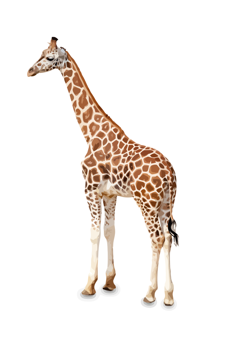This features a giraffe standing in an open area, possibly on a white background. It is the main focus of the scene and appears to be a close-up view of its body. The giraffe's long neck and legs are clearly visible, making it stand out as a unique and fascinating subject. Its distinctive spotted pattern adds an interesting visual element to the image, showcasing the beauty of this majestic animal.