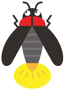 This features a colorful cartoon-like drawing of a firefly, which is black in color. It has two visible legs and an interesting bottom that emanates light. The firefly appears to be holding a yellow ball or fruit with its front legs, adding a playful touch to the illustration. This whimsical depiction of a firefly creates a unique visual experience for viewers.