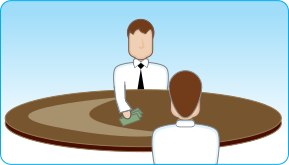 Tags: cartoon, discussion, face, icon, man, person, shirt, suit, table, tie, comic, drawing, money