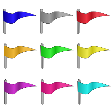 This features a collection of twelve different colored flags, each with varying shades and hues. These flags are displayed in an organized manner, lined up next to one another on the screen. They can be used as game marbles or for other purposes that require distinct colors and designs. The variety of colors and patterns make this display visually appealing and versatile for various applications.