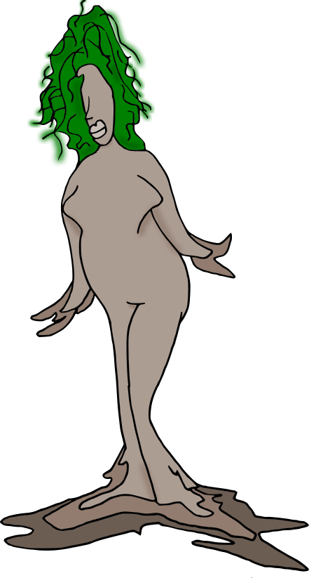 This features a green-haired woman with an elongated body, standing on one leg. She appears to be wearing a dress and has her arms outstretched. The woman's hair is styled in a way that makes it look like she has long, flowing locks. The overall appearance of the image gives off a surreal or fantastical vibe, as if the woman is a mythical creature or an artistic representation of a mermaid.