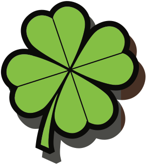 This features a four-leaf clover, which is an iconic symbol of good luck. It appears to be a stylized or cartoonish representation of the leaf, with its green color and distinctive shape. The four leaves are clearly visible, each one slightly overlapping the other in a circular arrangement. This unique design gives the impression that it could be a decorative piece or an artistic representation of the traditional symbol.