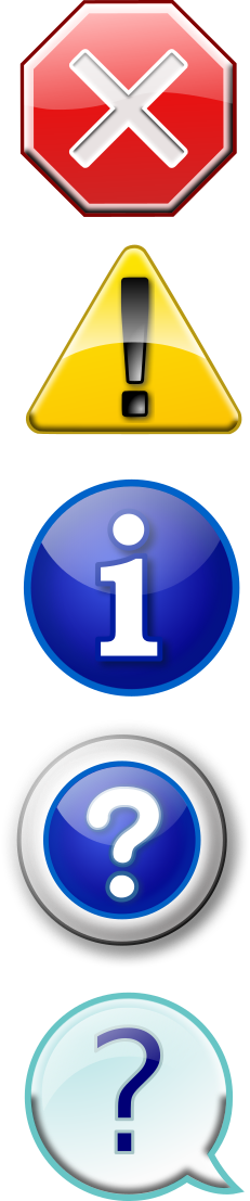 Tags: button, red x, yellow triangle, blue i, blue question mark