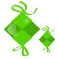 This features two green square ornaments with ribbons on each end. They are both attached to a string, making them appear as if they are hanging from it. These ornaments have a unique design and are likely used for decorative purposes or as gifts. Their vibrant color and distinct shape make them stand out in the image, creating an eye-catching display.