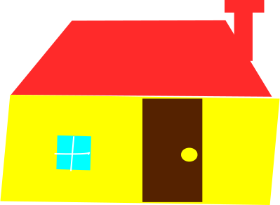 This features a small, colorful house with a red roof and yellow walls. It has two windows on the front side, one larger than the other, and a door situated in between them. The house is positioned on top of a brown background, which contrasts nicely with the vibrant colors of the home. This charming scene gives off a warm and inviting atmosphere, making it an appealing image for anyone who appreciates cozy homes or enjoys colorful architecture.