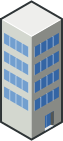 This features a large, multi-story building with many windows. It appears to be an office or commercial building, possibly located in the city center. The building is made of concrete and has a prominent presence in the scene. There are several smaller buildings visible in the background, adding depth and context to the urban environment. Overall, the image captures a significant architectural structure within a bustling cityscape.