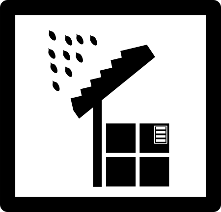 This features a black and white drawing of an umbrella, which is placed above a box. This drawing appears to be part of a collection of icons or pictograms that convey the theme of not getting wet. In addition to the umbrella, there are several other drawings in the scene, including one of a package and another of a roof. The overall composition suggests that these images might be used for various purposes such as labeling goods or conveying specific meanings through visual symbols.