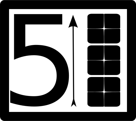 This features a black and white square with the number five written in it. In addition to the number, there is an arrow pointing upwards within the square. This unique design could be used for various purposes such as a logo or a symbol representing something related to the number five. The simplicity of the design allows it to be easily recognizable and versatile in different contexts.