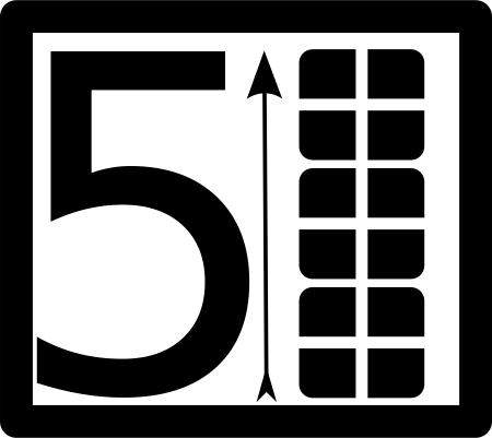 This features a black and white square with the number five written in it. Above the number, there is an arrow pointing upwards, indicating that the number represents a certain level of achievement or progress. This could be used as a symbol for success or advancement in various contexts such as education, sports, or business. The simplicity and boldness of the design make it versatile and easily recognizable.