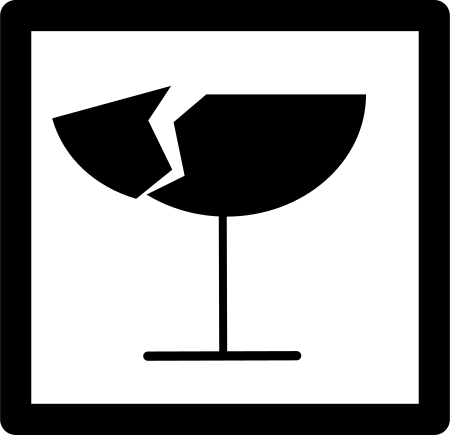 This features a black and white picture of a broken wine glass, with the stem broken off. This symbol is likely used to represent a warning or prohibition against using the item in question. The broken wine glass could be an indication that it should not be used for its intended purpose, possibly due to damage or lack of functionality. The image itself appears to be a simple and straightforward representation of the broken object, with no additional elements or distractions present.