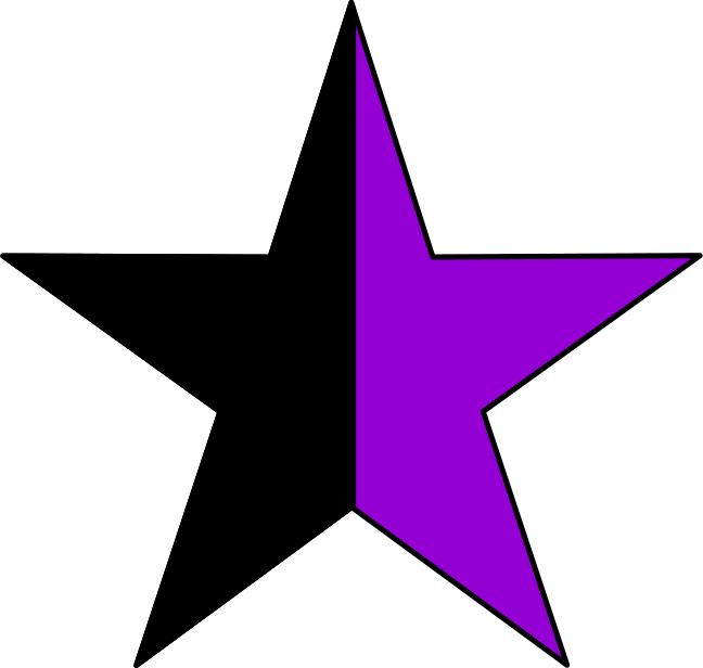 This features a purple star with black lines, creating an interesting contrast between the two colors. The star is large and takes up most of the frame, making it the focal point of the image. It appears to be a symbol or logo, possibly representing a specific cause or movement. The combination of the purple and black colors gives the star a unique and eye-catching appearance.