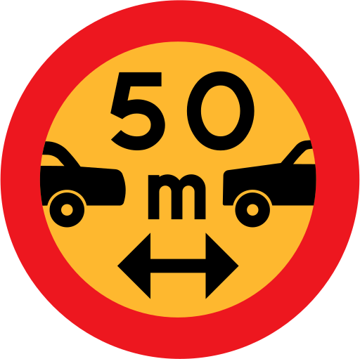 This is a completely free image 50m between cars sign that you can download, post, and use for any purpose.