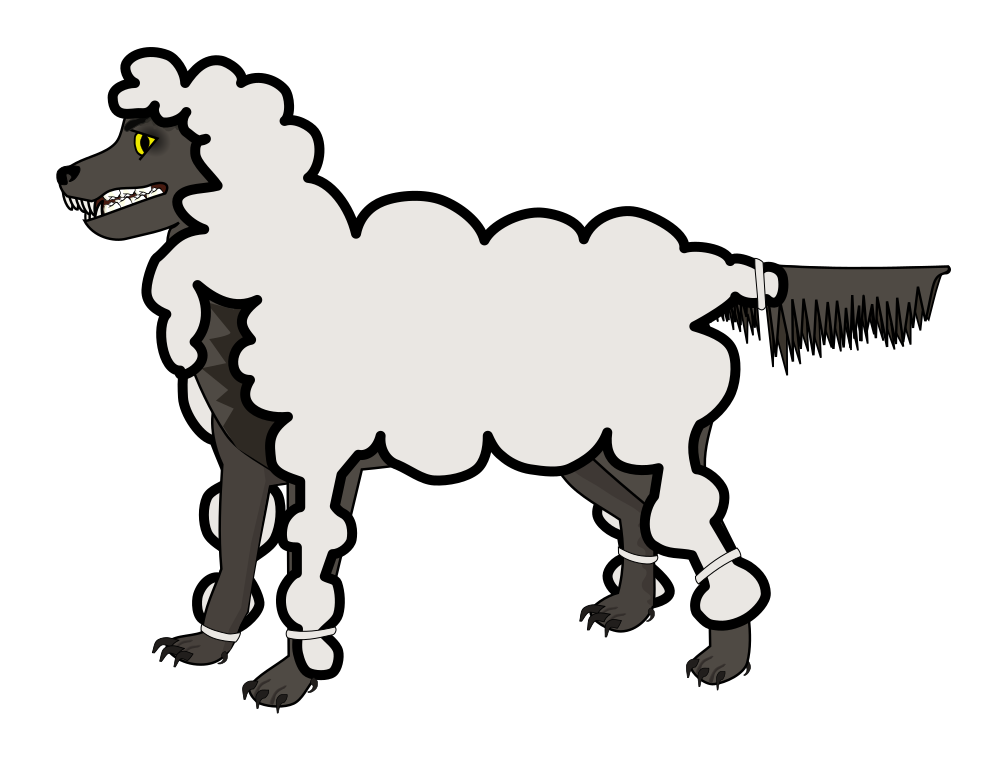 Tags: animal, contour, costume, disguise, mammal, sheep, villain, wolf