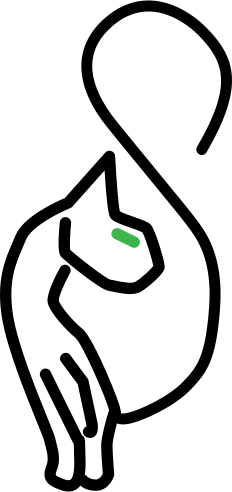This features a stylized cartoon outline of a black cat with green eyes. The cat is depicted in various positions, including sitting and standing, as it appears to be holding onto something or someone. The cat's body is outlined in white, while the rest of the drawing is in black. This unique design gives the impression that the cat is interacting with its surroundings or another object within the scene.