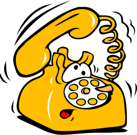 This features a yellow rotary dial phone with a cartoon face on it. The phone is off the base and has squiggly lines drawn around it to give it the appearance of ringing. It appears as if the phone is in motion, possibly being blown by the wind or shaking due to its position. This playful representation of an old-fashioned telephone adds a touch of humor and creativity to the scene.