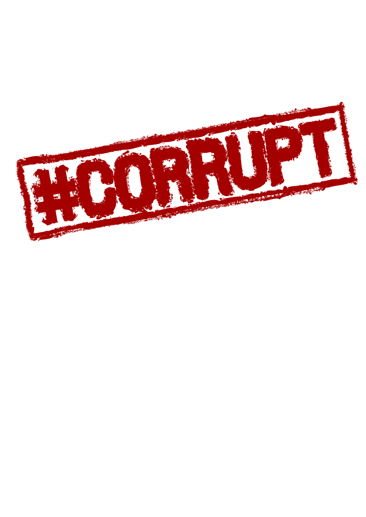 This features a red stamp with the word "Corrupt" written in white. The stamp has a rectangular frame, giving it a professional appearance. The text is bold and clearly visible, making it easy to read. This could be used as a symbol or logo for an organization or movement that seeks to address issues of corruption and promote transparency.