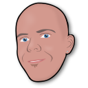 This features a cartoon drawing of a bald man with blue eyes and a smile. He has a beard, which is visible in the drawing. The man's head appears to be quite large compared to his body, giving him an exaggerated appearance. The drawing seems to capture a friendly and approachable demeanor, as the man smiles for the camera.