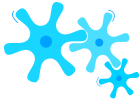 This features a blue and white design with two main elements. One of the elements is a large blue blob, which appears to be a cell or an organism, taking up most of the space in the scene. The other element is a smaller blue blob located towards the right side of the image. These two blue blobs are positioned next to each other and seem to be part of a larger design or pattern.