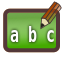 This features a green square with the letters A, B and C written on it. These letters are accompanied by a yellow pencil above them, giving the impression of an educational or learning tool. The color scheme is predominantly brown and green, creating a warm and inviting atmosphere for users to engage in their learning activities.