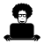 This features a black and white drawing of a person with curly hair, wearing glasses. They are sitting down and appear to be smiling. The person is holding an open laptop computer in their lap, which takes up most of the lower portion of the image. The overall composition creates a sense of relaxation and enjoyment while using technology.