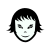 This is a black and white drawing of a woman's face. She has short, shaggy black hair and a smile on her face. The drawing appears to be a simple and minimalistic representation of the woman's features.