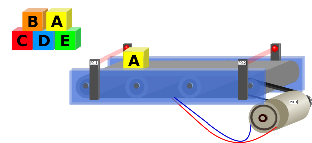 This features a blue device with several cords attached to it. There are two cords coming out of the top, one on the left and another on the right side. Additionally, there is a third cord coming from the bottom of the device. A fourth cord can be seen extending horizontally across the middle of the image. The blue device appears to be an electronic component or machine with multiple connections.