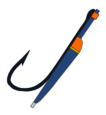 This features a blue and orange fishing lure, which is designed to catch fish. It has an odd shape with a hook at the end of it. The lure appears to be made from plastic and is attached to a rod. This type of lure is commonly used by anglers for fishing in various bodies of water such as lakes or rivers. The combination of blue and orange colors makes it visually appealing, which can attract the attention of fish and increase the chances of catching them.
