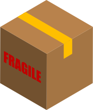 This features a brown cardboard box with the word "fragile" written on it. This indicates that the contents of the box are fragile and should be handled carefully to avoid damage. The box is depicted in a 3D perspective, giving it a more realistic appearance. The word "fragile" is displayed prominently on the front of the box, making it clear for anyone handling or receiving the package that they need to exercise caution when opening and moving the contents inside.