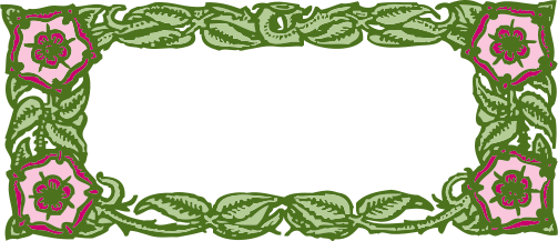 This features a decorative frame made of flowers and leaves. The frame is green in color, with the flowers and leaves intricately designed to create an elegant appearance. There are several pink flowers scattered throughout the frame, adding a touch of vibrancy to the overall design. The combination of the green background and the pink flowers creates a visually appealing and harmonious composition.